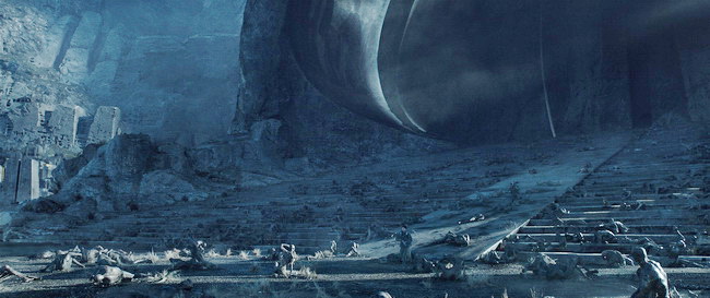 Deux autres vaisseaux apparaissent dans le film, une navette de transport de personnel, et un engin cargo. Ce dernier se trouve au centre d’une scène à suspense dans laquelle un soldat et l’héroïne se retrouvent sur la coque en plein vol, pour combattre un alien Xénomorphe. Dès le départ, l’équipe savait qu’il s’agissait-là sans doute de la scène à effets visuels la plus complexe de tout le film. L’action impliquait le vaisseau lui-même, l’environnement créé de toutes pièces, le xénomorphe animé en 3D, ainsi que les acteurs principaux…