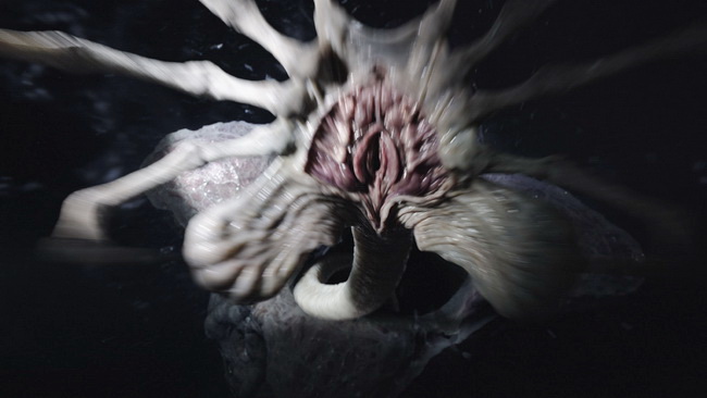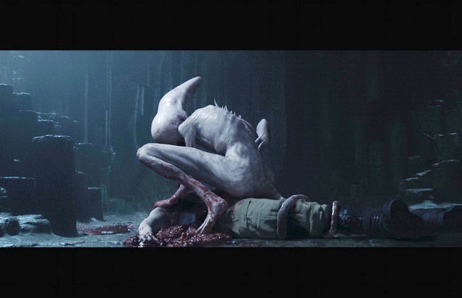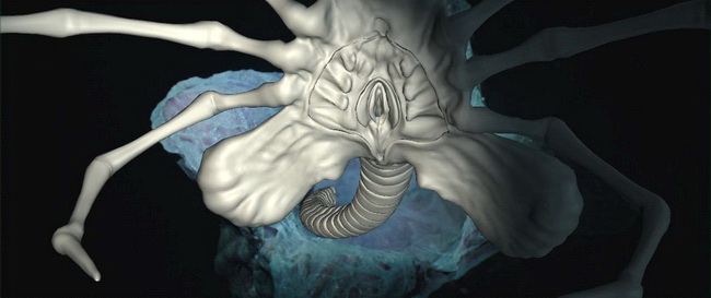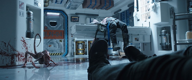 À l’exception de la naissance du Néomorphe, nouveau petit frère du Xénomorphe, des petites créatures, et de plans ponctuels, la plupart des créatures que l’on voit dans le film ont été créées par ordinateur, un projet géré par MPC. “Le remplacement des effets de créatures a été motivé par deux raisons,” souligne Henley. “Cela n’avait rien à voir avec la qualité des effets réalisés par l’équipe des maquillages. La première, c’était que Ridley voulait continuer à travailler sur le design, même après le tournage. Il avait manqué de temps en préproduction pour vraiment fixer le design définitif, et il voulait tester d’autres idées en postproduction – les créatures numériques le lui permettaient. La seconde raison, c’était qu’il souhaitait voir les créatures bouger d’une manière qui était impossible pour un interprète humain ou une marionnette, comme lorsque le xénomorphe marche à quatre pattes sur le vaisseau cargo. Avec l’animation 3D, on peut mettre au point des cycles de marche totalement atypiques. Ça renforce le côté « extraterrestre » des créatures. Parallèlement, nous avons aussi « augmenté » en numérique les plans tournés avec les petites créatures, comme le « face hugger » ou le « chestburster ». Framestore a travaillé sur ces effets pour renforcer l’impact des prises de vues réelles.”