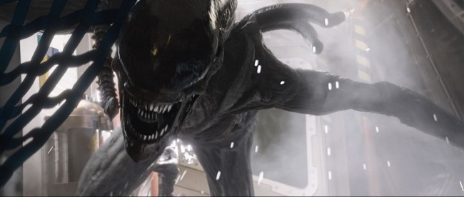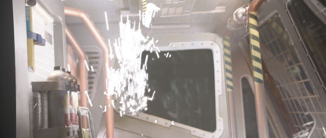 Pour préparer le terrain, la séquence a été soigneusement prévisualisée en 3D. “Avec le département effets spéciaux et le chef décorateur, nous avons décortiqué l’action plan par plan pour déterminer ce qui pouvait être filmé « en vrai » et ce qu’il fallait créer en numérique, quelle taille devait avoir le décor réel, etc. Nous avons finalement convenu de construire le tiers de la navette cargo en un décor grandeur nature, puis de le monter sur un support hydraulique pour simuler sur les acteurs les effets du vol. Le décor était conçu de façon modulaire afin de représenter différents endroits de la plate-forme. Suivant la nature de l’action, l’avant pouvait devenir l’arrière et inversement ¬– c’était très astucieux. En postproduction, nous avons complété le décor avec des extensions 3D, puis intégré le flux des propulseurs, et enfin, animé le xénomorphe. Pour créer un effet de vitesse, des paquets de brume ont été incrustés dans l’image, traversant le décor à toute vitesse. Ça rendait l’action encore plus frénétique. Quand l’engin était cadré de loin, il s’agissait d’une version animée en 3D. Dans ces plans-là, l’image entière est une création numérique.”