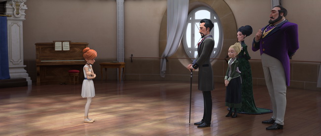 Quad Productions s’est vraiment saisi en 2013 de cette histoire proposée par les réalisateurs Eric Warin et Eric Summer. Une fois le scénario finalisé et les financements réunis, ils se sont entourés de spécialistes pour développer les aspects créatifs de Ballerina. Le directeur artistique Florent Masurel a reconstitué le Paris haussmannien de 1879 au prix de plusieurs mois de recherche iconographique : l’Opéra Garnier juste achevé, la Tour Eiffel en chantier, le palais du Trocadéro ancienne version (1878) sur la colline en face, … Sans oublier la Statue de la Liberté en cours de construction par le sculpteur colmarien Bartoldi dans les ateliers de Gustave Eiffel. Un décor mythique, rendu de façon réaliste, plus que les personnages qui sont d’un réalisme plus stylisé, moins distinctif.