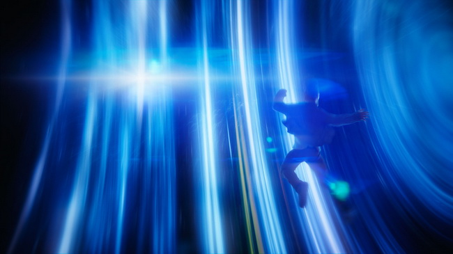 Le même principe a prévalu pour la scène finale où les deux héros se retrouvent dans une rue où tous les gens marchent à reculons. Il s’agit en l’occurrence de la manifestation d’une réalité parallèle où le temps est inversé, mais sans affecter les personnages principaux. Pour réaliser ces plans, l’équipe a tourné à chaque fois deux prises en motion control : une passe avec les acteurs principaux, puis une autre avec les figurants, lesquels marchent normalement. En postproduction, le sens de défilement de l’action dans la passe « figurants » a été inversé, puis ces images ont été combinées avec celles des acteurs qui, eux, marchent normalement.