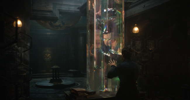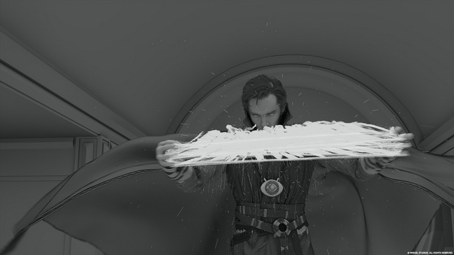 Pour Ceretti, la première chose a été de visualiser la magie et les univers parallèles, un défi considérable dans la mesure où il s’agissait de concepts très abstraits. “Ces choses étaient totalement inédites dans l’univers Marvel au cinéma,” commente Ceretti. “Nous partions vraiment de zéro. Cela s’est traduit par un gros challenge au niveau de la recherche visuelle et de la conceptualisation. Comme il ne s’agissait pas de recréer la réalité, mais d’en inventer une nouvelle, tout se prêtait à interprétation. Personne dans l’équipe n’avait le même avis sur comment les choses devraient être… Du coup, ça a pris beaucoup de temps pour mettre les choses en place et trouver le bon équilibre. Nous avons commencé par faire une recherche autour de tout ce qui concerne les illusions d'optique, les kaléidoscopes, les fractales, les illusions photographiques, le light-painting aussi (qui consiste à créer des « peintures » avec de la lumière en longue exposition). Ensuite, nous avons essayé d’analyser tous ces éléments pour que ça fasse sens avec le script, et pour trouver des moyens de les intégrer dans le film.”
