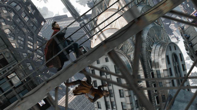 Pour visualiser ces plans d’anthologie, l’équipe a utilisé plusieurs références très connues, dont le travail de Maurits Escher sur les architectures impossibles, les montres molles de Salvador Dali, et aussi Monument Valley, un jeu sur iOS qui joue sur les fausses perspectives. “C’est grâce à la prévisualisation que nous avons pu faire fonctionner ces illusions dans le cadre d’un film. Le problème avec les images d’Escher, par exemple, c’est qu’elles fonctionnent parfaitement en image fixe, avec un point de vue unique. Mais quand vous faites une poursuite dans New York avec la caméra qui bouge tout le temps, c’est infiniment plus compliqué de maintenir l’illusion… Notre idée a donc été de créer des illusions d’optique où l’on a l'impression que tout est bien agencé sous un certain angle, et dès qu’on fait bouger la caméra, on s’aperçoit que le monde est déformé d’une façon totalement différente de ce qu’on croyait.”