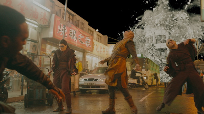 Sur le plan de la déformation d’un univers réel, on pensait avoir tout vu avec Inception, mais Doctor Strange va beaucoup loin : les gratte-ciel de Manhattan se tordent comme du caoutchouc, d’autres basculent comme des dominos, certains se retrouvent à l’envers… et le tout, au beau milieu d’une scène de poursuite effrénée. “Quand on arrive à ce degré-là de déformation, on est un peu en dehors des lois de la physique… Le concept du réalisateur pour tout ce qui touchait à la magie dans le film, c’était d’utiliser des objets ordinaires et de les faire réagir de façon extraordinaire. Donc, prendre des immeubles et faire qu’ils se déforment comme s’ils étaient mous.”