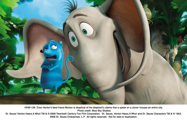 Dr. Seuss. Ce nom vous dit quelque chose ? Pas vraiment, n’est-ce pas ? Pourtant, il est l’auteur pour enfants le plus célèbre des États-Unis, l’équivalent américain d’un Andersen ou d’un Grimm. Cet auteur illustrateur (1904-1991) a pondu une quarantaine d’ouvrages remarquables, tous écrits en vers et basés sur un vocabulaire volontairement limité pour être accessible aux plus petits. Parmi ses livres, trois ont déjà été adaptés en long métrage, Le Grinch, Le Chat Chapeauté, et aujourd’hui, Horton.