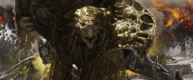 Tandis que Uncharted Territory, MPC et Scanline se concentraient sur les environnements, Weta Digital était confronté à la grande nouveauté du film : la reine alien, une créature de plus de 80 mètres de haut. “J’ai confié cette séquence à Weta sur la base de leur travail sur des personnages géants comme Kong et Smaug,” précise Engel. “Il s’est avéré très difficile de rendre cette créature crédible à l’écran. Quand on voit un monstre haut comme une tour de 30 étages et doté de tentacules qui bougent dans tous les sens, notre esprit a du mal à l’accepter comme réel. Weta a donc beaucoup travaillé l’échelle de la créature, au niveau des textures, de l’animation, du rendu de la masse, etc.