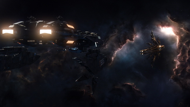 Dans le film, les vaisseaux spatiaux disposent d’un système gravitationnel qui leur permet d’avoir des éléments physiquement dissociés de la coque, mais faisant néanmoins partie intégrante de l’engin. Ces éléments mobiles, semblables à des ailes ou des voiles, se repositionnent en fonction des phases de vol. Cette caractéristique se traduit à l’écran par des engins à l’élégance rare.