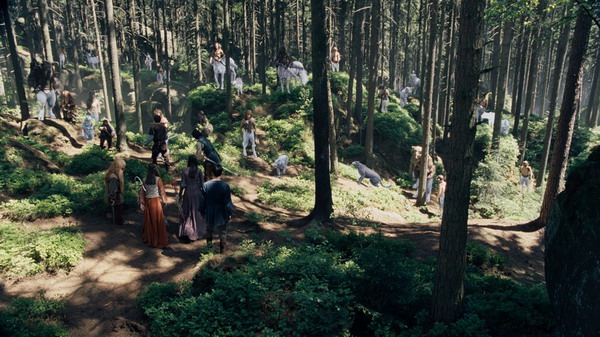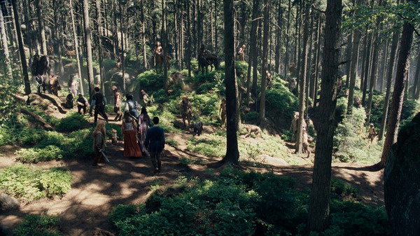 Les centaures s’avèrent être les personnages « humanoïdes » les plus complexes à visualiser. “Selon le cadrage et le type d’action, nous avons mis en œuvre trois techniques différentes,” précise Dean Wright. “Les centaures sont soit des acteurs maquillés auxquels on a ajouté un corps de cheval 3D, soit de vrais chevaux dont on a effacé la tête pour la remplacer par le buste d’un homme 3D, soit le personnage entier est une animation 3D.”