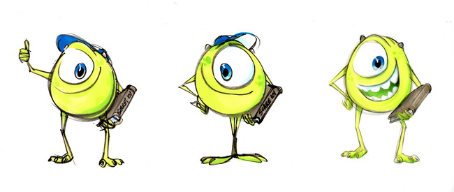 Parfois, ce n’était pas suffisant : même aminci et plus coloré, Bob restait une petite boule verte avec un seul œil. Ça le changeait, mais ça ne le rajeunissait pas vraiment. Pour y remédier, chaque personnage principal a été agrémenté d'une signature visuelle caractéristique : Bob porte un appareil dentaire, Sulli une mèche rebelle sur la tête, Randall des lunettes, etc. Ce petit détail contribue énormément à différencier les deux âges des personnages.
