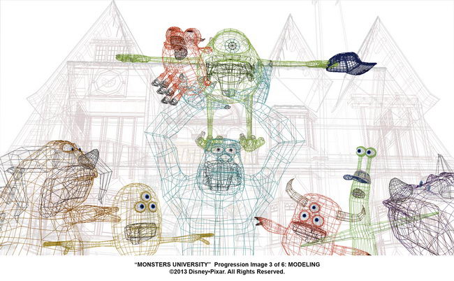 La grande nouveauté par rapport au premier film, c'est la fourrure. À l’époque, la simulation de poils constituait un défi extraordinairement complexe. C'était la première fois qu’un personnage central de film d'animation 3D était recouvert de fourrure. Le défi s'était avéré si complexe, et les temps de rendu tellement astronomiques, que les réalisateurs avaient décidé qu’aucun autre personnage n'aurait de fourrure dans le film. Pour Monstres Academy, cette limitation ne s'appliquait plus, nous pouvions en mettre partout ! Nous avons donc commencé à multiplier les personnages à fourrure jusqu'à ce que le réalisateur Dan Scanlon fasse une remarque très pertinente : en ajoutant ces monstres à poils un peu partout, nous étions en train de changer l'univers de Monstres et Cie. Nous n'étions plus « raccord » avec ce qui avait été montré dans le premier film. Du coup, beaucoup de personnages ont perdu leur fourrure.