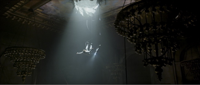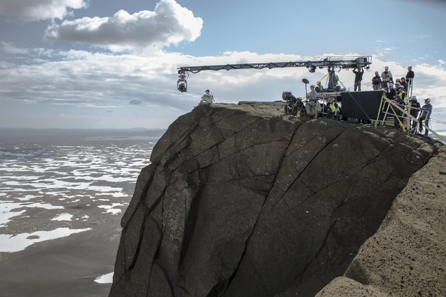 Les images aériennes ont été tournées depuis le sommet d’un volcan à Hawaï, un site offrant une vue dégagée à 360 degrés. Trois caméras Red Epic juxtaposées ont filmé le ciel sur 120 degrés. Les images ont ensuite été assemblées par Pixomondo de manière à former une dizaine de cycloramas QuickTime de 14K de largeur sur 2K de hauteur. Les films étaient ensuite projetés à partir de 20 projecteurs HD sur des écrans de 13 mètres de haut derrière les vitres du décor. Résultat, des dizaines de plans enregistrés en direct, sans effets visuels (avec une belle économie à la clé), et une immersion totale du décor intérieur et des comédiens dans l’environnement.