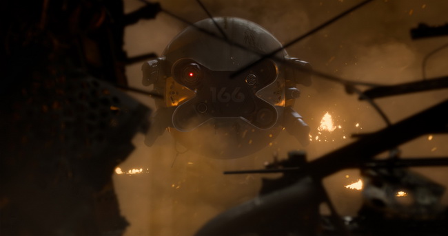 Le processus d’animation des drones a mis en évidence un problème de conception. “Leur forme sphérique était mal adaptée au vol. Ça passait mal à l'écran, le vol semblait artificiel. Pour pallier ce problème, nous avons travaillé sur un concept de jets propulseurs. En situation de vol, le drone émet des jets de gaz multidirectionnels qui lui permettent de se stabiliser et de se diriger. Sur le plan visuel, ça fonctionnait infiniment mieux.”