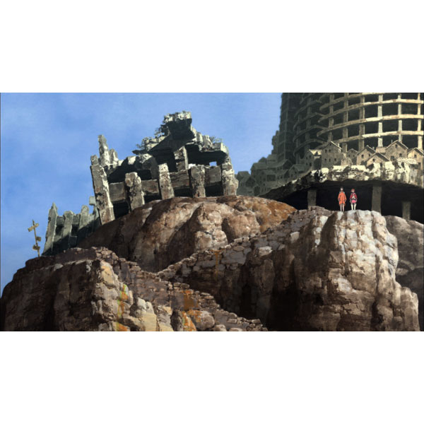 On retrouve ici une vision pessimiste de notre avenir qui n'est pas sans rappeler « Nausicäa » (rien d'étonnant à cela : Umanosuke Iida est l'auteur des deux histoires ainsi que de « Le château dans le ciel ») , « Appleseed » ou même « Final Fantasy: the spirits within ». Une humanité qui a forgé son propre malheur doit décider si elle veut recréer le passé ou s'inventer un nouvel avenir. Mais le cadre est ici écolo plutôt que « méca », ce qui nous vaut un des principaux attraits du film : des décors fouillés, somptueux, à base de paysages ou de ruines grandioses, avec des précipices vertigineux. Le côté mécanique n'est pas absent non plus : les machines de la ville de Ragna sont d'un rétrofuturisme superbe (le train double nous a en particulier fait penser à celui de « Syberia » de Benoît Sokal). Et on voit aussi Istok, l'arme de la revanche, une montagne qui marche très reminiscente du « Château dans le ciel » (du même auteur : Umanosuke Iida) ou encore du « Château ambulant » (conceptuellement, pas graphiquement). Le tout réalisé avec un mix de 2D (prédominante) et de 3D (engins et effets spéciaux). Nous avons profité du passage au festival d'Annecy 2006 (où « Origine » concourait en sélection long métrage) du réalisateur Keiichi Sugiyama pour nous entretenir avec lui.
