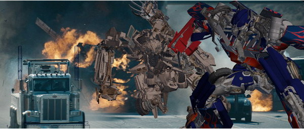 D’ailleurs, le projet s’avère si complexe que Michael Bay est contraint de confier une centaine de plans à Digital Domain. Il faut dire aussi que la prestigieuse société fondée par James Cameron est sa propriété depuis qu’il l’a rachetée l’an dernier avec le soutien d’un groupe d’investisseurs. Forcément, un petit coup de pouce pour le business maison, ça ne peut pas faire de mal… Supervisés par David Prescott, les effets comprennent plusieurs dizaines de plans d’animation de robots. ILM fournit les géométries, ainsi que toutes les textures, mais malheureusement, les différences entre certaines technologies maison empêchent Digital Domain de récupérer les rigs originaux. Il faut donc tout reprendre à zéro et retrouver le rig de chaque personnage à partir d’animations tests fournies par ILM. Les robots de Digital Domain seront finalement recréés et animés dans Maya, texturés dans Photoshop et Zbrush, tandis que les effets d’animation seront réalisés dans Houdini, et le rendu dans Mantra. Pour le compositing, le studio fera confiance à son logiciel maison, Nuke. Pour chaque transformation, Digital Domain utilise trois modèles différents du même robot : la version camouflage, le modèle en cours de transformation, et enfin, le robot lui-même. Deux équipes différentes se partagent le travail d’animation : l’une gère uniquement les déplacements et les animations conventionnelles, tandis que l’autre se charge de créer les transformations. Celles-ci exigent en effet un doigté et une technique particulière qui ne conviennent apparemment pas à tous les animateurs.