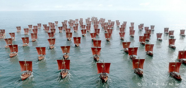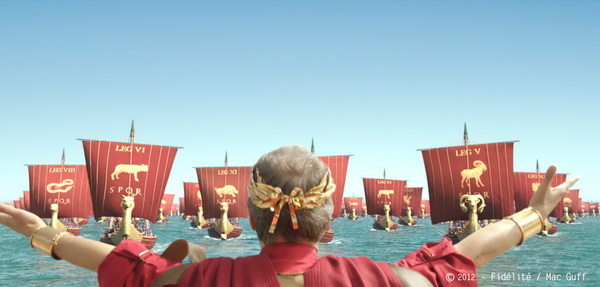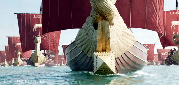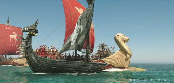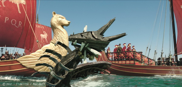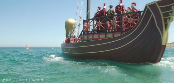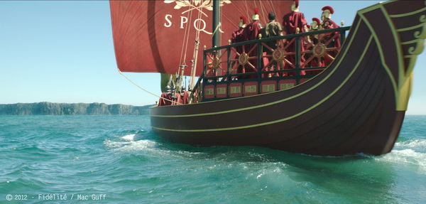 Mac Guff ne peut récupérer qu’un seul élément dans la base de données que Duboi avait créée, à savoir la géométrie des galères romaines. Pour le reste, les pipelines étaient trop différents pour que la nouvelle équipe puisse reprendre quoi que ce soit. Il a donc fallu repartir de zéro pour la modélisation et les textures de tous les autres éléments.