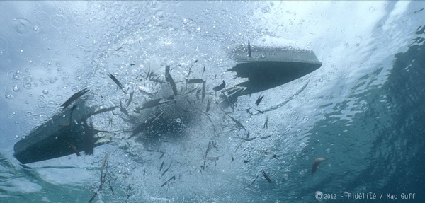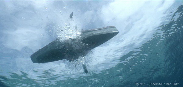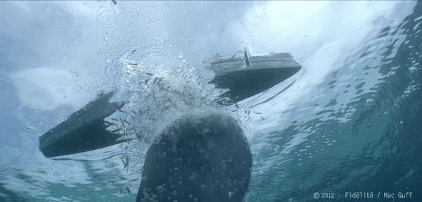 Le seul élément que la production n'avait pas prévu, c’était que cette illusion d'optique s'accordait mal avec la stéréoscopie… “Dans un film en 2D, ça marche parfaitement, mais en 3D, l'illusion ne fonctionne plus,” explique Rodolphe Chabrier. “Comme le relief permet d’apprécier les distances, on remarque tout de suite que l'eau du bassin est devant, que la mer est au loin et qu'il y a un espace vide entre les deux… Résultat, il a fallu remplacer systématiquement l'arrière-plan par une mer animée en 3D. Cela s'est avérée être un très gros projet, ces plans n’étaient pas censés comporter des effets visuels. Il a fallu détourer à la main des dizaines de cordages et autres équipements pour pouvoir intégrer la mer à l’arrière-plan. En théorie, ça n'a rien de compliqué, car on fait ça tout le temps, mais avec le relief, c'était incroyablement difficile. On pouvait avoir une rotoscopie parfaite sur l'image gauche et sur l'image droite, mais lorsqu'on les voyait ensemble avec des lunettes 3D, ça ne marchait plus, on voyait un décalage sur le cache… Avec le relief 3D, tous les problèmes sautent aux yeux, même ce qui passerait inaperçu en 2D. Heureusement, grâce à notre expérience en matière de stéréoscopie, on a pu identifier les problèmes rapidement et de livrer tous les plans en temps et heure.” Pendant la postproduction, Mac Guff sera amené à convertir plusieurs plans qui avaient dû être tournés en 2D pour des raisons pratiques.