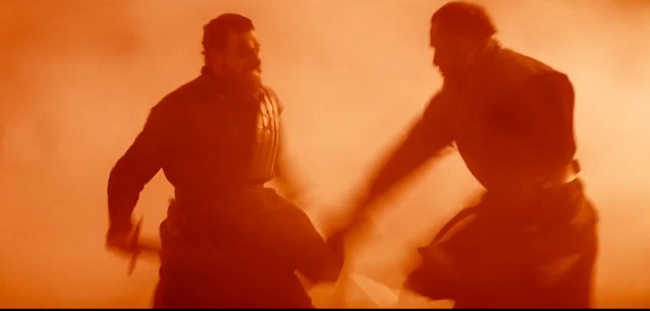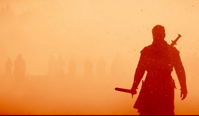 « De même, la bataille finale, très stylisée, baigne dans un brouillard rouge comme si Macbeth était déjà en enfer. Nous avons littéralement poussé le rouge aussi loin que nous permettait l’espace colorimétrique. Cependant, l’idée n’était pas d’applique un rouge uniforme, mais d’en avoir un rouge dans les ombres qui évoluait vers du jaune en pleine lumière, ce qui nous a posé des problèmes de cohérence. On pourrait penser qu’il suffit de copier-coller le rouge d’un plan à l’autre, mais quand vous regardez la séquence entière, les désaccords vous sautent aux yeux ».