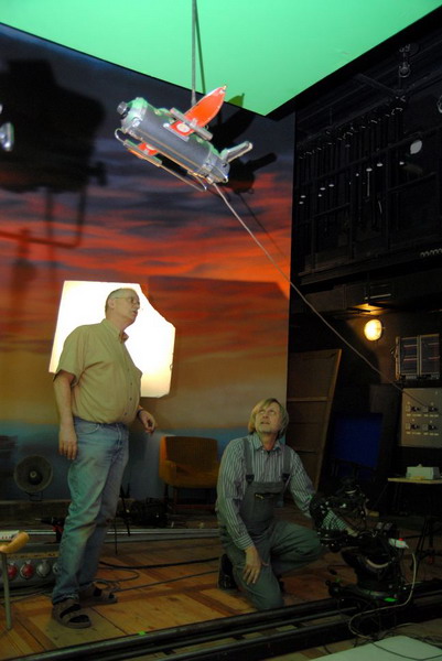 Jiri Barta réalisant la scène où l'avion traverse le grenier dans le film Drôle de grenier!