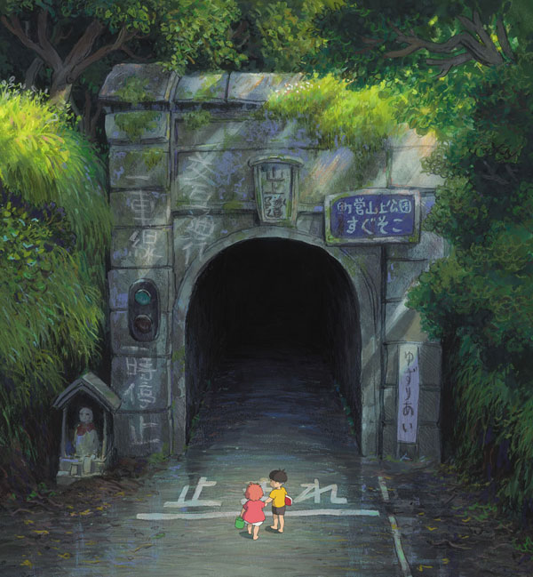 Sosuke incite Ponyo à entrer dans le tunnel.