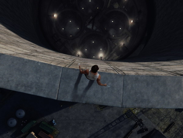 Image finale : vue plongeante sur Wolverine, avec matte painting rajouté pour donner la profondeur de la tour de refroidissement.