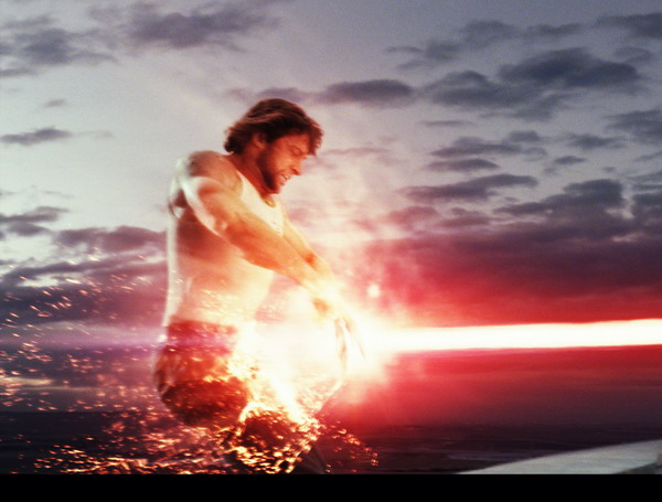Image finale, avec ciel en matte painting et rajout des griffes de Wolverine et des rayons laser par le studio Hydraulx.
