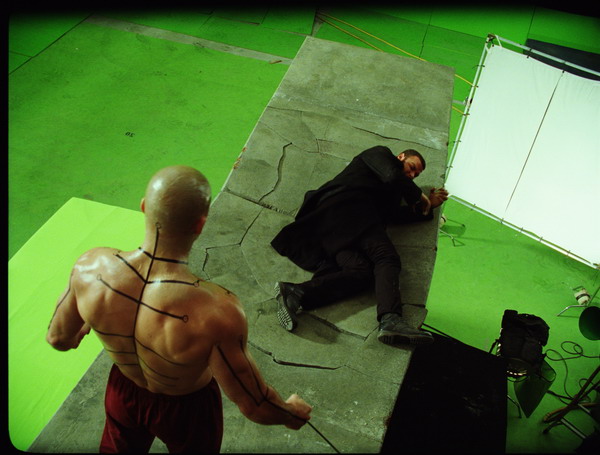 Tournage sur fond vert.