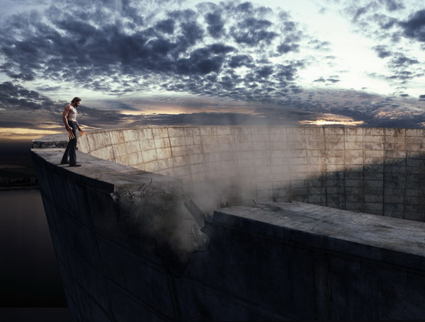 Image finale : arrière-plan rajouté en matte painting, destruction numérique de partie du mur.