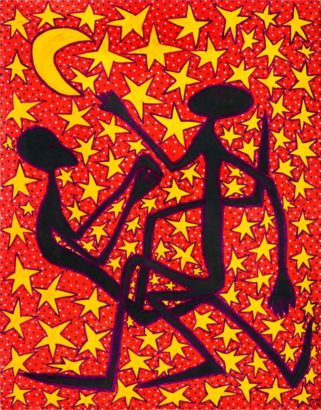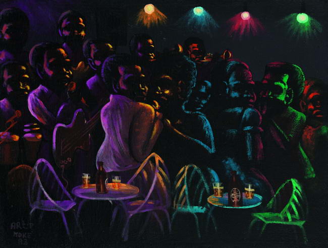 Oublions les référence à la peinture naïve, il faudrait plutôt parler ici de roublardise : derrière le rire et la fête, la critique sociale n’est jamais loin, et ces artistes font preuve d’une ironie mordante. Et partout, les peintures explosent de couleurs et de mouvements, cultivent une figuration au service de la narration, d’un propos qui se veut accessible à tous. Un vrai contraste avec l’art contemporain occidental, souvent sombre et conceptuel. Un autre continent.