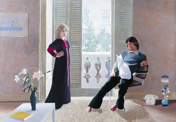 L’exposition prend comme point de départ le mélange d’art, de musique et de mode qui se fait jour dans les écoles d’art de Grande-Bretagne à la fin des années 60. Après des années d’idéalisme et d’engagement politique révolutionnaire, c’est le retour de l’individualisme, du désir de briller et donc de transgresser les codes établis. Paillettes et élégance outrée sont de mise, et les questions de genre et d’identité font surface, particulièrement aux USA où la culture gay de la côte Est s’approprie le mouvement. Andy Warhol fait figure de chef de file avec son aphorisme fameux « tout le monde sera célèbre pour 15 minutes ». Narcissisme et maniérisme envahissent peinture et photos à l’image du portrait de Mr et Mrs Clark (icones de la mode à l’époque) par David Hockney en 1971. Les concerts de rock deviennent autant du performance art, lightshows inclus, que de la musique live.