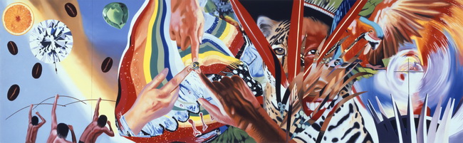 Né en 1933, peintre d’affiches publicitaires à ses débuts, James Rosenquist en a gardé une facilité à travailler ses œuvres sur plusieurs plans et à jouer avec les thèmes. Il aborde ainsi des sujets aussi variés que la géopolitique, la technologie, l’écologie, ou la cosmologie.