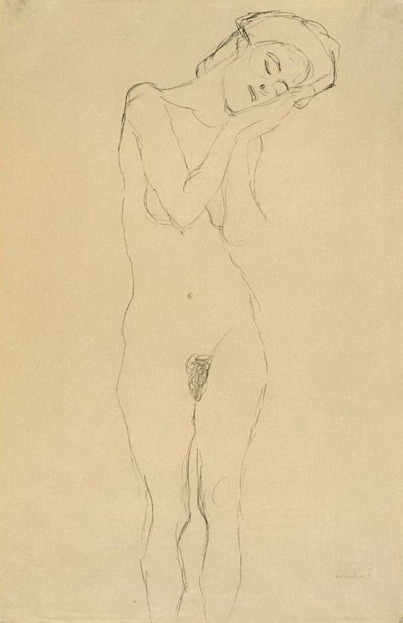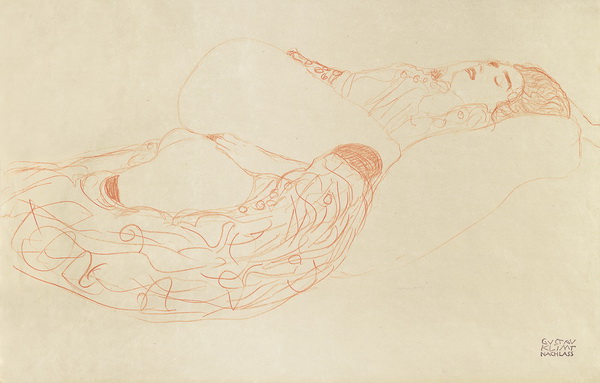 Symbole de la Vienne de 1900, Gustav Klimt est le représentant le plus connu de la Sécession, ce mouvement artistique autrichien qui s'oppose alors à l'académisme dominant tout comme les impressionnistes français l'ont fait en leur temps. Profusion des détails, richesse des couleurs et des motifs distinguent son oeuvre. Sensualité et rêve pénètrent ses tableaux, souvent consacrés à des figures féminines, dominatrices et lointaines à la fois. Klimt dessine beaucoup (on lui connait 3700 dessins), avec une liberté de ton encore plus grande que dans ses tableaux, n'hésitant pas à représenter une femme se caressant (« Liegender Akt »)