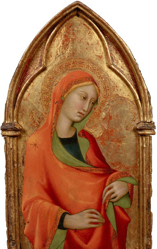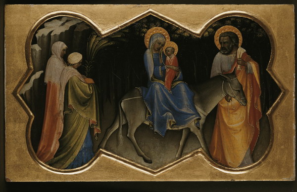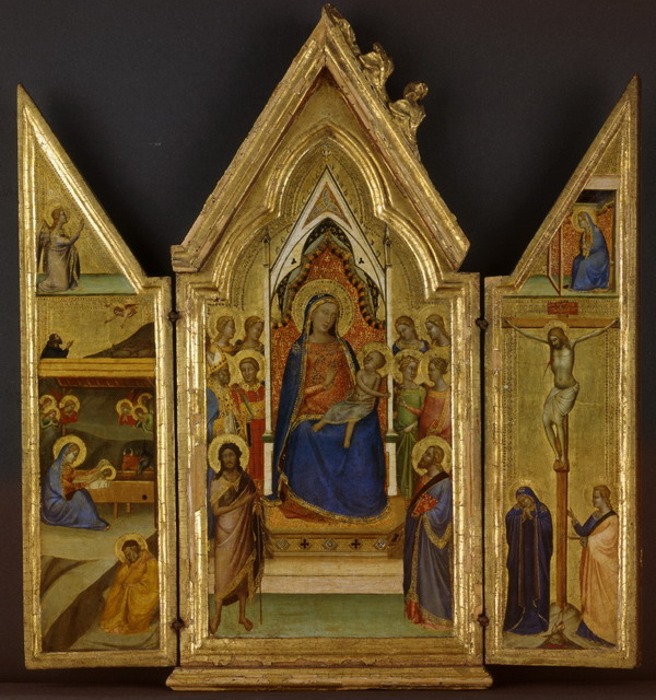 Il s'agit là de peintures religieuses : réalisées en tempera (procédé où les pigments sont liés par du jaune d'oeuf) sur panneau de bois, ces peintures proviennent souvent de polyptiques mis en place dans des églises et traitent de la vie du Christ ou de ses saints. En les exposant par ordre chronologique, l'exposition prend le parti d'une mise en scène simple et didactique : bien vu pour des peintures et artistes largement inconnus (à part Fra Angelico) du grand public. Et on voit ici le style byzantin, hiératique, comme encore les icônes orthodoxes actuelles, céder la place au style gothique, très coloré, aux arrière-plans travaillés pour mieux raconter la scène. Et de même, dans les peintures des années 1450 et après, le mouvement des personnages et la construction de l'espace signalent l'arrivée de la Renaissance et de la peinture moderne.
