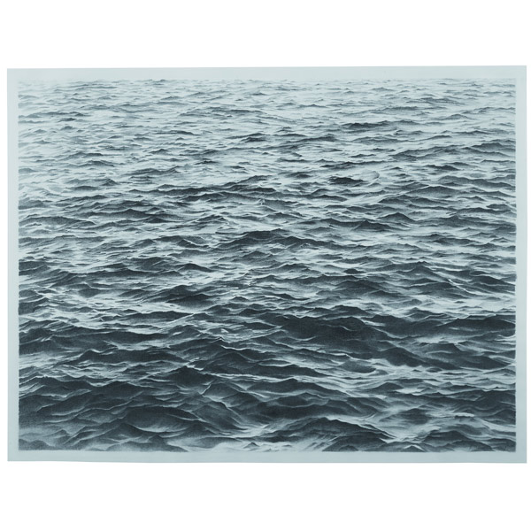 Originaire de Lettonie, Vija Celmins brasse son passé et les événements qui s’y rattachent dans des dessins qui séduiront les plus sceptiques, tant l’accent est mis sur l’impalpable, le fugace de la réalité terrestre. En effet, dés 1967, le dessin à la mine de plomb et au fusain prend le premier rôle dans l’œuvre de cette artiste, dont les influences antérieures étaient celles de l’expressionnisme abstrait. Les vestiges d’une réelle figuration sont cependant représentés au sein de cette première rétrospective, par six dessins (coupures de journaux, dirigeable, revolver…) traduisant les obsessions de Vija Celmins, telles que les catastrophes atomiques et les guerres en tous genres (Hiroshima, Bikini; Zeppelin 1968,). Mais c’est bel et bien les paysages infinis qui retiendront, captureront le visiteur, dans leur indéfinissable fidélité au réel, afin de lui insuffler le sentiment d’être, tour à tour, entouré d’eau, égaré dans un désert, propulsé dans l’espace et les méandres de ses galaxies.