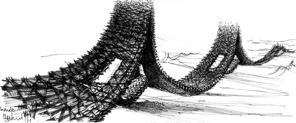 En contrepoint des planches des auteurs de BD, où la ville est l’héroïne, le travail des architectes fait apparaître des influences issues du 9e art… Cet angle de l’exposition met de fait l’accent sur le mode de représentation de l’architecture et de la ville, et sa tentative d’exploration d’un univers connexe dessiné, depuis les années 1910 (Sant’Elia) jusqu’à aujourd’hui (BIG, Herzog et De Meuron, Andrés Jaque…), en passant par les années 1970 (Archigram, Coop Himmelblau, Jean