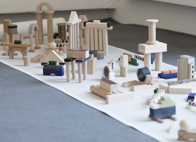 Née en 1990, Pernelle Poyet a bâti son « Alphabet » avec une approche singulière du design et une rigueur dans le travail qui ont séduit le jury présidé par le designer britannique Max Lamb. L’analogie avec la typographie n’est évidemment pas fortuite : à partir d’une grille orthonormée, Pernelle Poyet a déterminé un ensemble de quatre-vingt-douze formes de base en hêtre. La surface du bois est imprimée, peinte ou vernie, augmentant ainsi le catalogue des possibilités narratives. Grâce à un jeu d’échelles, les modules calibrés permettent de confectionner de petits objets ou des meubles à l’infini.