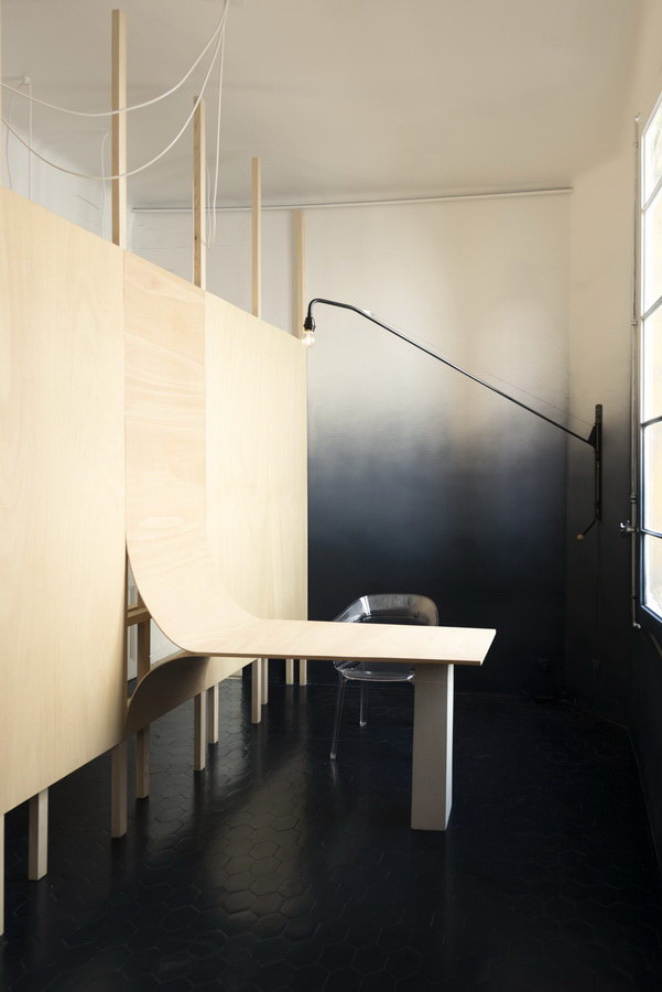 Leur projet « Immersed Office » consiste en une architecture légère qui prend place au centre d’une salle et y délimite une zone de documentation et une zone de création. La bibliothèque est élaborée telle une coque enveloppante qui renferme un espace de travail isolé du monde. Un traitement complet de l’espace et une qualité de réalisation qui ont distingué Studio Quetzal aux yeux du jury présidé par l’architecte et designer française India Mahdavi.