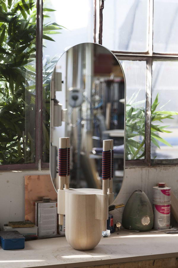 Samy Rio, Grand Prix Design Parade 10 en 2015 avec des objets en bambou, signe son retour à la Villa Noailles avec des travaux en… céramique, verre et bois. Les formes élémentaires des vases, ainsi que du miroir édité par la galerie Kréo, démentent la subtilité des assemblages : les choses ne sont simples qu’en apparence.