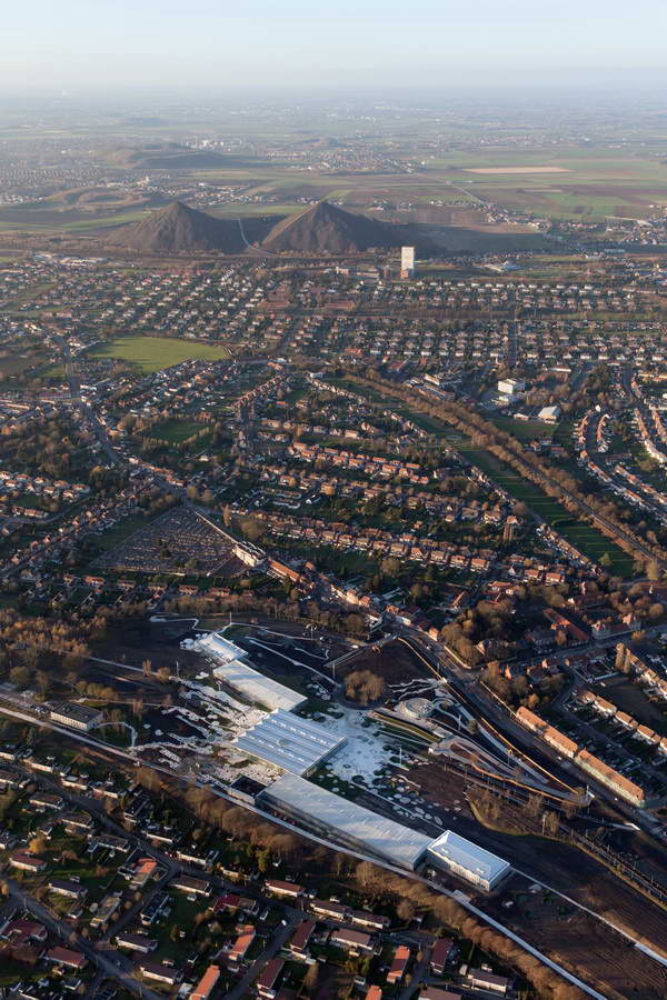 Le Louvre-Lens se situe sur une friche de 20 hectares, qui abritait un important site d’extraction de charbon recolonisé par la nature, suite à sa fermeture en 1960. Le terrain est légèrement surélevé, résultat de l’accumulation des remblais de la mine. Afin de ne pas créer une forteresse imposante, les architectes de l’agence japonaise SANAA (Kazuyo Sejima et Ryue Nishizawa) ont opté pour une structure basse, facilement accessible, qui s’intègre au site sans l’écraser de sa présence. Cinq corps de bâtiments de verre et de métal la composent. Ce sont quatre rectangles et un grand carré aux parois légèrement incurvées dont les angles se touchent.