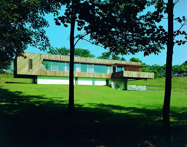 Le rectangle couché (côté long dans l’axe horizontal) est l’un des éléments de design le plus novateur utilisé par Breuer dans nombreux intérieurs avant de le transposer dans ses architectures. Cette forme géométrique de base apparaît en 1927, dans la résidence Piscator, et ce type de rangement devient un élément récurrent dans les aménagements des intérieurs de Breuer. Il reprendra ce motif en architecture 23 ans plus tard dans la maison Tompkins, sous la forme de percement allongé en façade, il l’appliquera à d’autres maisons avec des variantes.