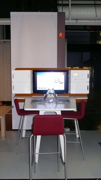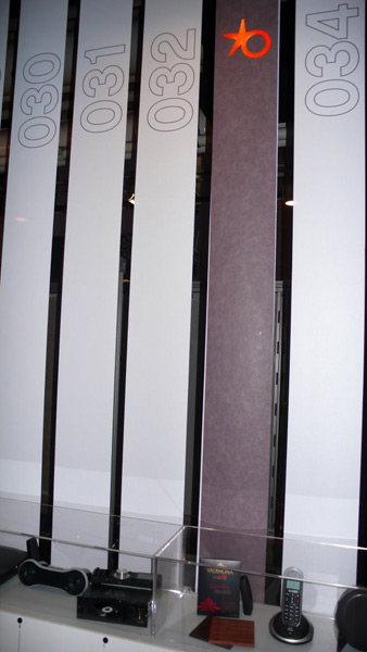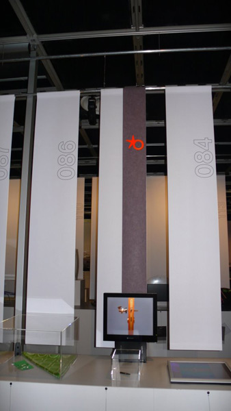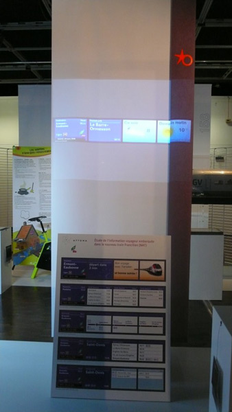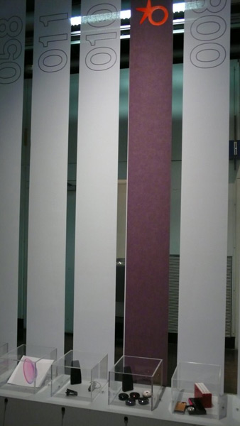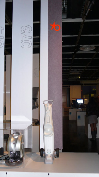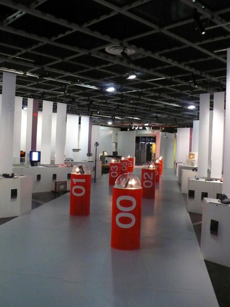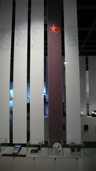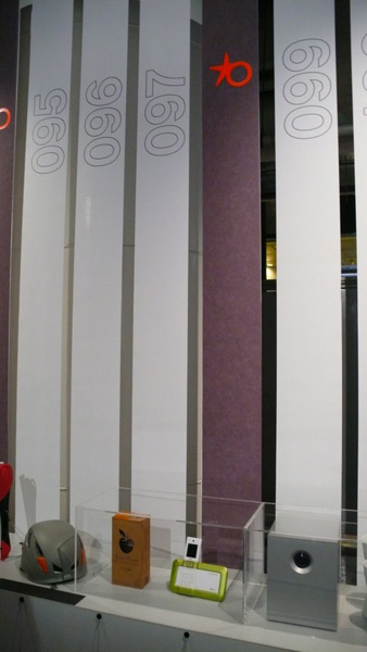 Pour cette dixième exposition, la scénographie rend hommage aux éditions précédentes de l'Observeur du design au travers de petites totems-bougies qui retracent sur écran LCD les produits Etoilés les plus marquants.