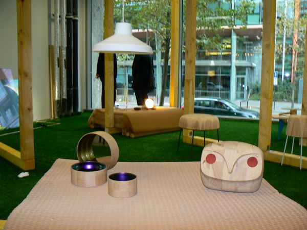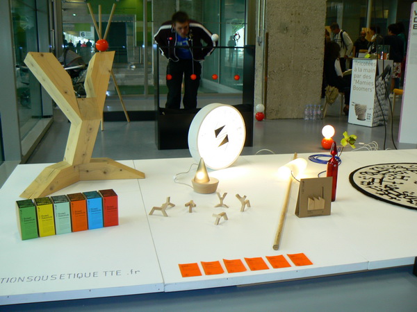 Une richesse de talents qui a clairement séduit le public venu nombreux les découvrir. Nous y avons remarqué, côte à côte, deux tendances qu'on pourrait penser opposées mais qui sont plutôt complémentaires. D'un côté un design sobre, écologiste et économe, plutôt fonctionnaliste, tourné vers l'alliance de matériaux traditionnels et de nouveaux designs. Un design apparemment très prisé par les écoles présentes (Ecole supérieure d'Art et de Design de St Etienne, ECAL de Lausanne, ENSA de Limoges). En face, quelques designers expérimentant jusqu'au délire (le volcan d'appartement de Glitch Fiction), remettant en cause de façon jubilatoire les conceptions établies. Et au milieu de tout cela, l'exposition de dessins "Dessine-moi le Japon": une centaine de créateurs font don de leur dessin pour un eexposition itinérante qui finira début 2012 par une vente au bénéfice des vistimes du tsunami de mars 2011.