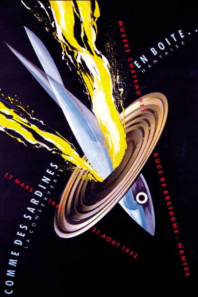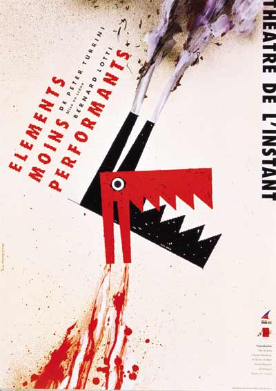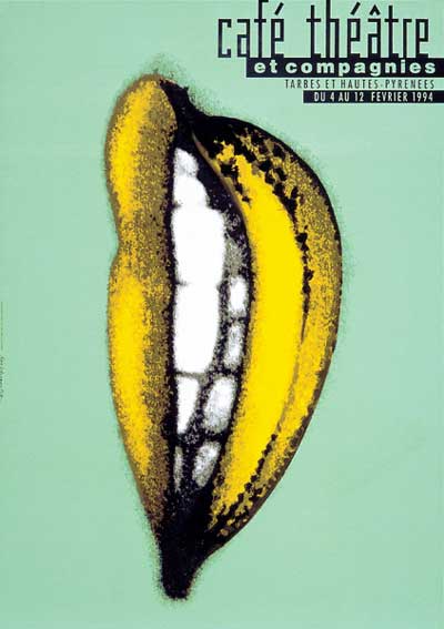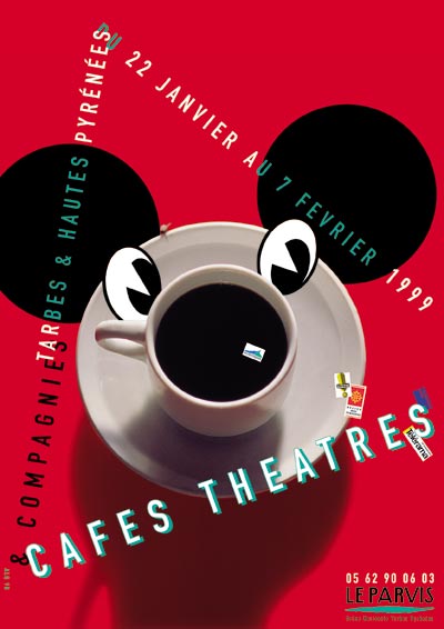 Mais, l'exercice est jubilatoire, et parfois on s'y enivre... et l'affiche se transforme en shaker dans lequel le graphiste secoue à l'envi quelques échantillons puisés dans le stock des icônes consacrées. Il en ressort un cocktail au sens propre : une queue de coq, une gerbe de couleurs au goût décapant dans laquelle les vieilles images retrouvent fraicheur et jeunesse. On y invite souvent au théâtre ou à l'Opéra.