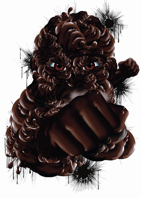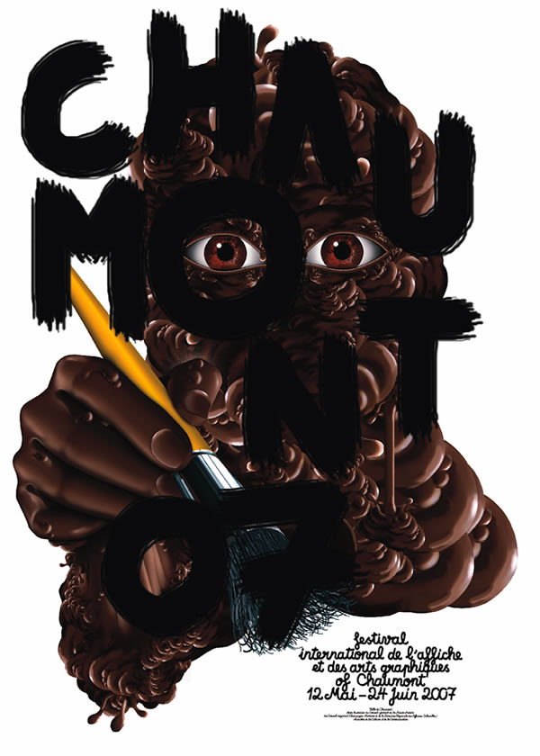 Etonnante affiche cette année pour célébrer la 18e édition du Festival. Cet un monstre étrange et dégoûlinant qui accueille les visiteurs. Créé par le graphiste suisse Mathias Schweizer. Comme un pied de nez à la démultiplication marketing des mascottes (on pense à celle de la SNCF, de Cetelem, de Nesquik ou encore de Banania), le jeune créatif de 34 ans a imaginé un monstre de chocolat armé d'un pinceau. L'affiche se décline en plusieurs versions sur lesquelles Mathias Schweizer intervient en typographie ou en motif.