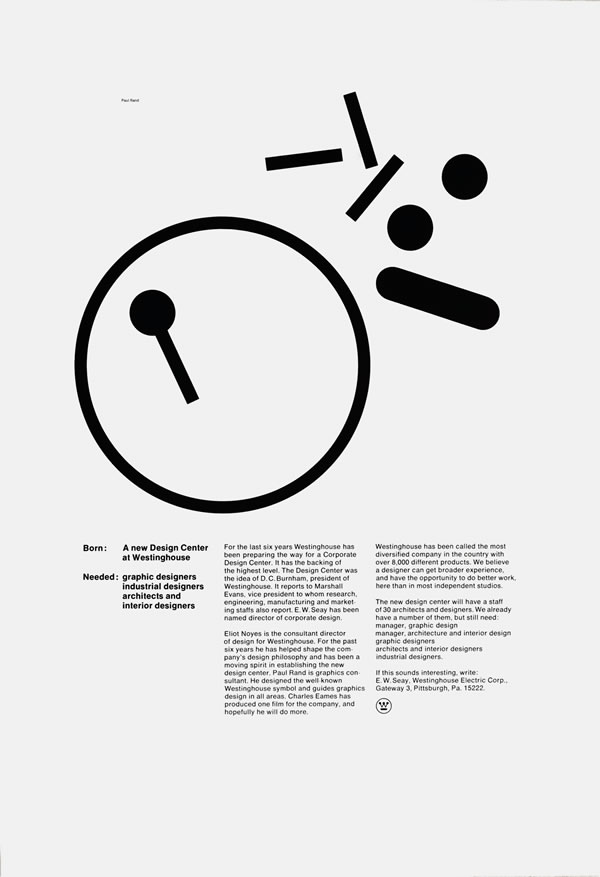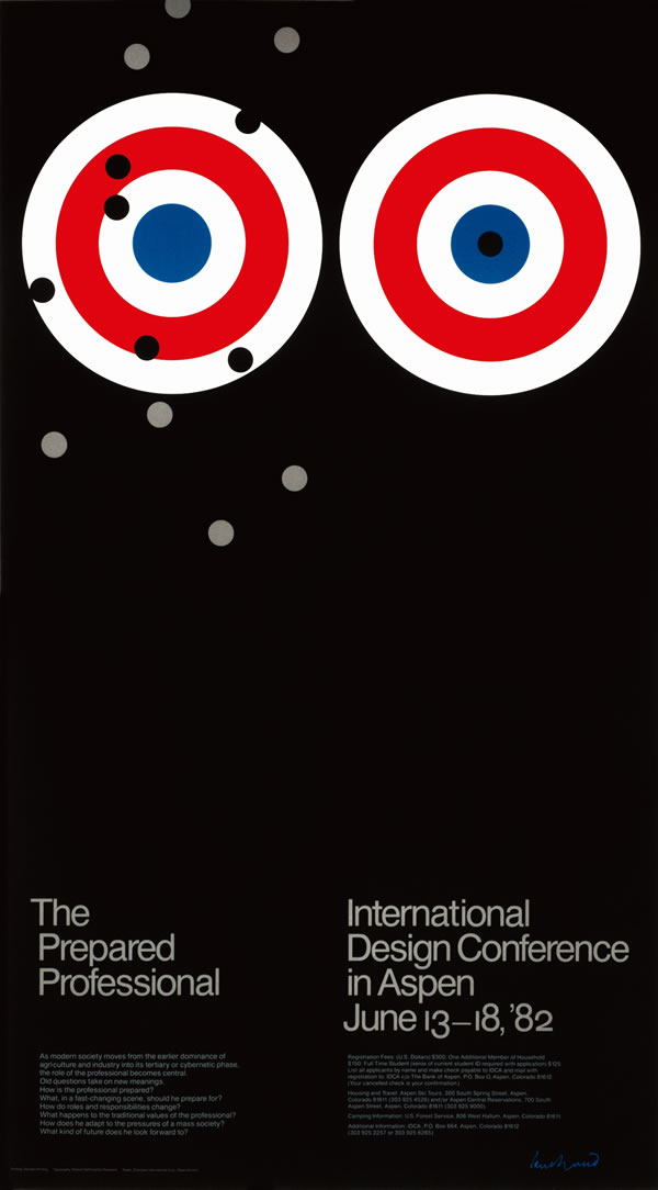 Natif de Brooklyn où il voit le jour en 1914, Paul Rand aura développé, jusqu'à son décès en 1996, une oeuvre personnelle, toujours moderne, unique bien qu'inspiré du modernisme européen. Le Bauhaus, Dada, de Stijl ou le Cubisme auront guidé ses pas sans jamais l'étouffer, lui permettant simplement de renverser les codes graphiques alors en cours aux Etats-Unis. Pragmatique tout autant que créatif, Paul Rand aura surtout réussi à convaincre les grandes marques - ses clientes - de l'importance et de la respectabilité du design graphique. Avec lui, IBM, UPS ou bien Westinghouse ont su développer une grammaire visuelle efficace et esthétique. Théoricien de la chose, enseignant à Yale, il aura toujours pris en compte les réalités culturelles, sociales et intellectuelles de son métier. Et reste toujours, plus de dix ans après sa mort, un vrai graphiste moderne.