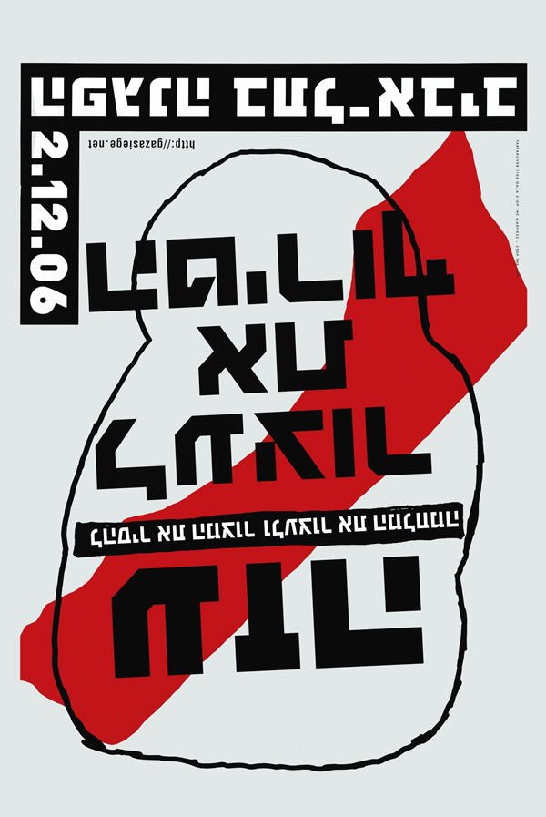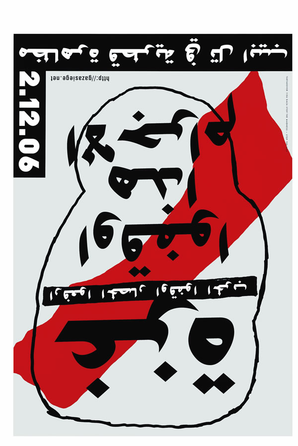 Enfin, le troisième prix a célébré le grand graphiste israélien David Tartakover avec ses deux affiches célébrant la paix, l'une en hébreu, l'autre en arabe - Stop the war ! - datées de 2006.