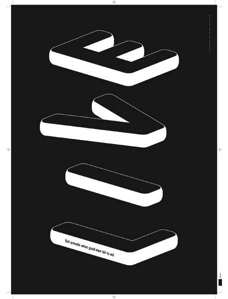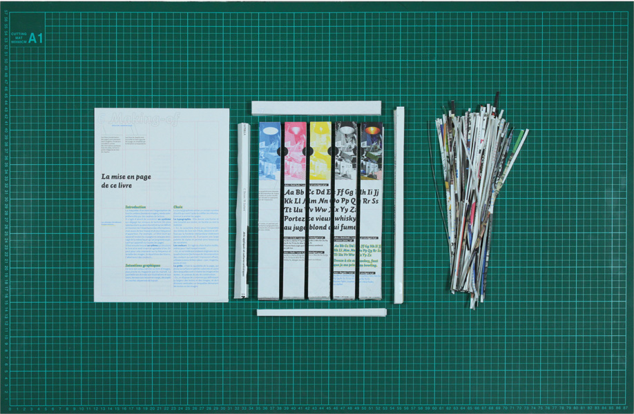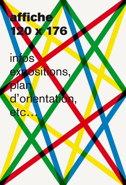 Passé de l’autre côté, le spectateur découvre son contenu : une série de 64 affiches qui sont autant de combinaisons des 6 fondamentaux du graphisme - contraste, forme, image figurative, typographie, texte et composition.