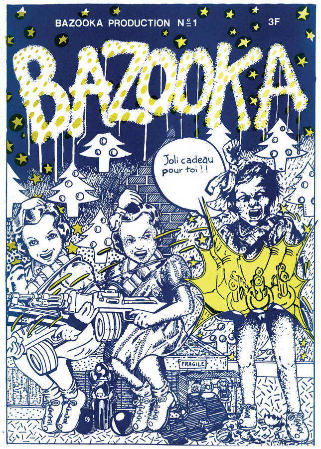 Formé vers 1974, le collectif français Bazooka est l’un des seuls équivalents durables à la puissance de la culture visuelle des Sex Pistols. Il est constitué par des élèves de l’École des Beaux-Arts de Paris, Olivia Clavel, Philippe Renault (Lulu Larsen), Christian Chapiron (Kiki Picasso), Jean-Louis Dupré (Loulou Picasso), Bernard Vidal, rejoints par Philippe Bailly (Ti5-Dur) et Jean Rouzaud. Au lieu de jouer de la musique, le groupe joue des arts visuels dans un cadre de production qui ne s’apparente à la bande dessinée que pour mieux en casser les codes.