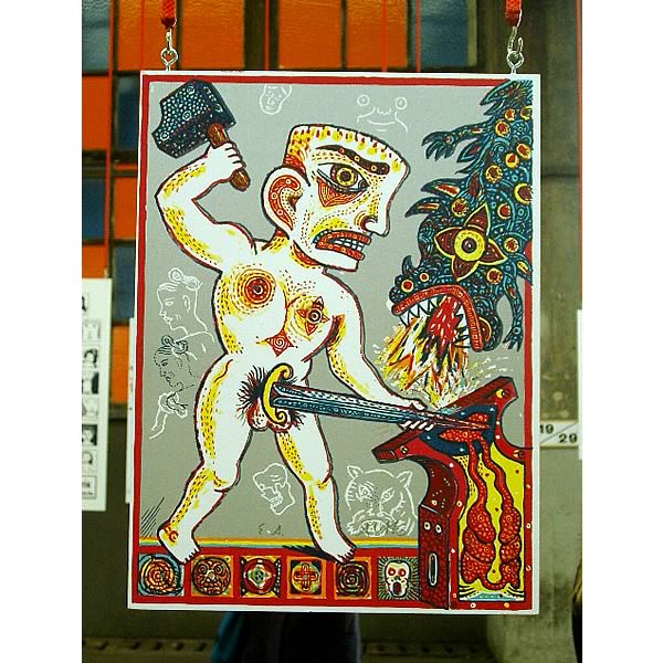 Les organisateurs ont ainsi choisi de rendre hommage à l'affichiste polonais Henryk Tomaszwski, disparu récemment. Une légende du graphisme engagé, d'auteur, qui aura marqué la génération aux manettes actuellement (on pense aux anciens Grapus, parmi lesquels figurent - tiens donc, Pierre Bernard et Alex Jordan). En voilà un autre que l'affiche polonaise a influencé, c'est le très libre Michel Quarez, qui a décoré de ses icônes bien membrées et fluorescentes les splendeurs de la Chapelle des Jésuites. L'homme aime la provocation et ne laisse jamais indifférent. Quarez chez les Jèses, tout un programme !