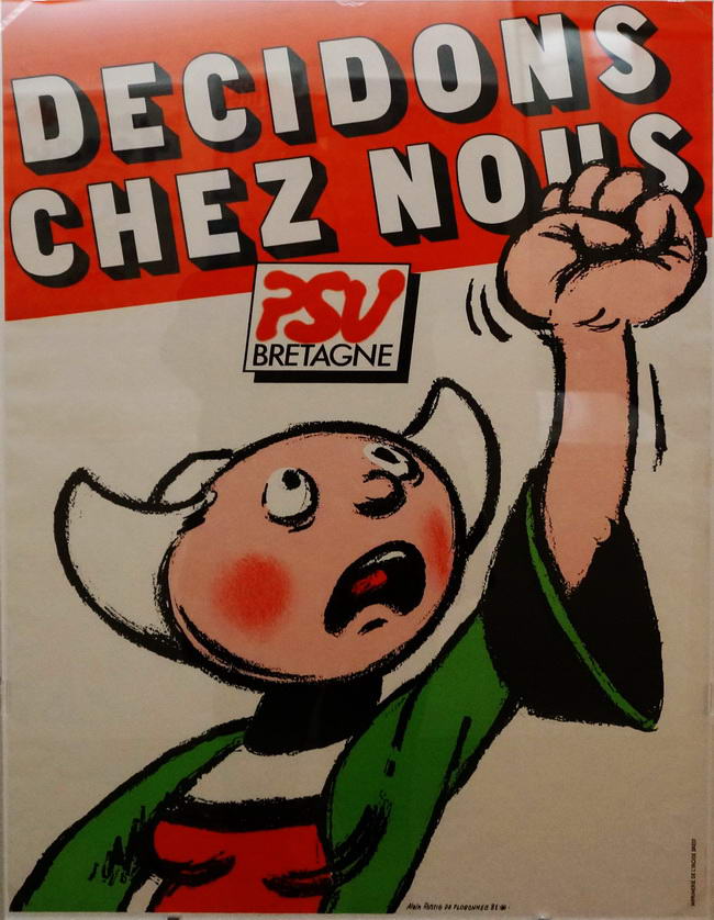 On y (re)trouve les principaux artistes qui ont alors mis leur talent au service de leur engagement politique. Le collectif français Grapus, bien sûr, actif précisément pendant cette période 1970-1990. Leurs affiches alternent entre revendications directement exprimées et envolées lyriques, titres bien posés et accroches rageuses en lettres manuscrites. Le breton Alain Le Quernec est évidemment de la partie, ainsi qu’un graphiste français moins connu mais tout aussi engagé, Claude Baillargeon. A eux trois, ils auront beaucoup fait pour renouveler la communication du Parti Communiste dans les années 80.