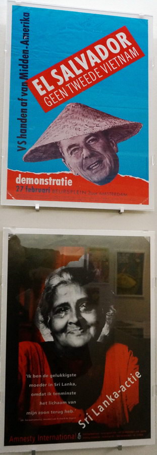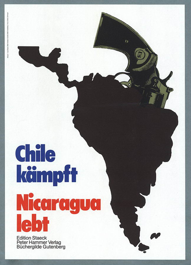 Autres pays, préoccupations similaires. Le collectif Wild Plakken (Lies Ros, Rob Schröder, Frank Beekers), équivalent néerlandais de Grapus, privilégie montages photos et collages pour dénoncer aussi bien l’apartheid en Afrique du Sud que les répressions en Amérique latine (Chili, El Salvador), et promouvoir les mouvements d’émancipation féministes ou homosexuels aux Pays-Bas. Et le graphiste allemand Klaus Staeck a de son côté fondé sa propre maison d’édition pour publier les affiches qu’on ne lui commandait pas !